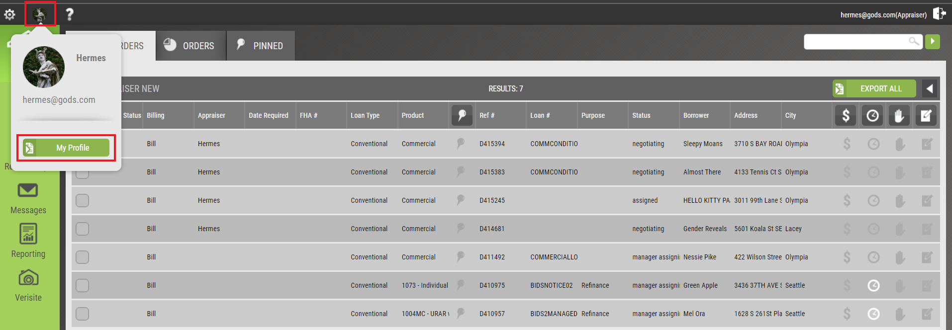 How To Use This Feature: After you login to your Appraisal Firewall account, select the Profile Icon in the top left, between the gear icon and the question mark. Select My Profile.
