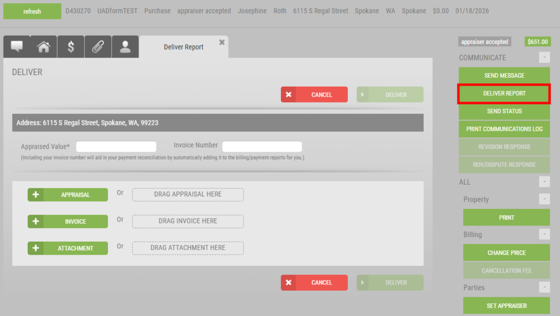 Delivering the UAD 3.6 report follows the same method as UAD 2.6 (the current version), via Deliver Report.